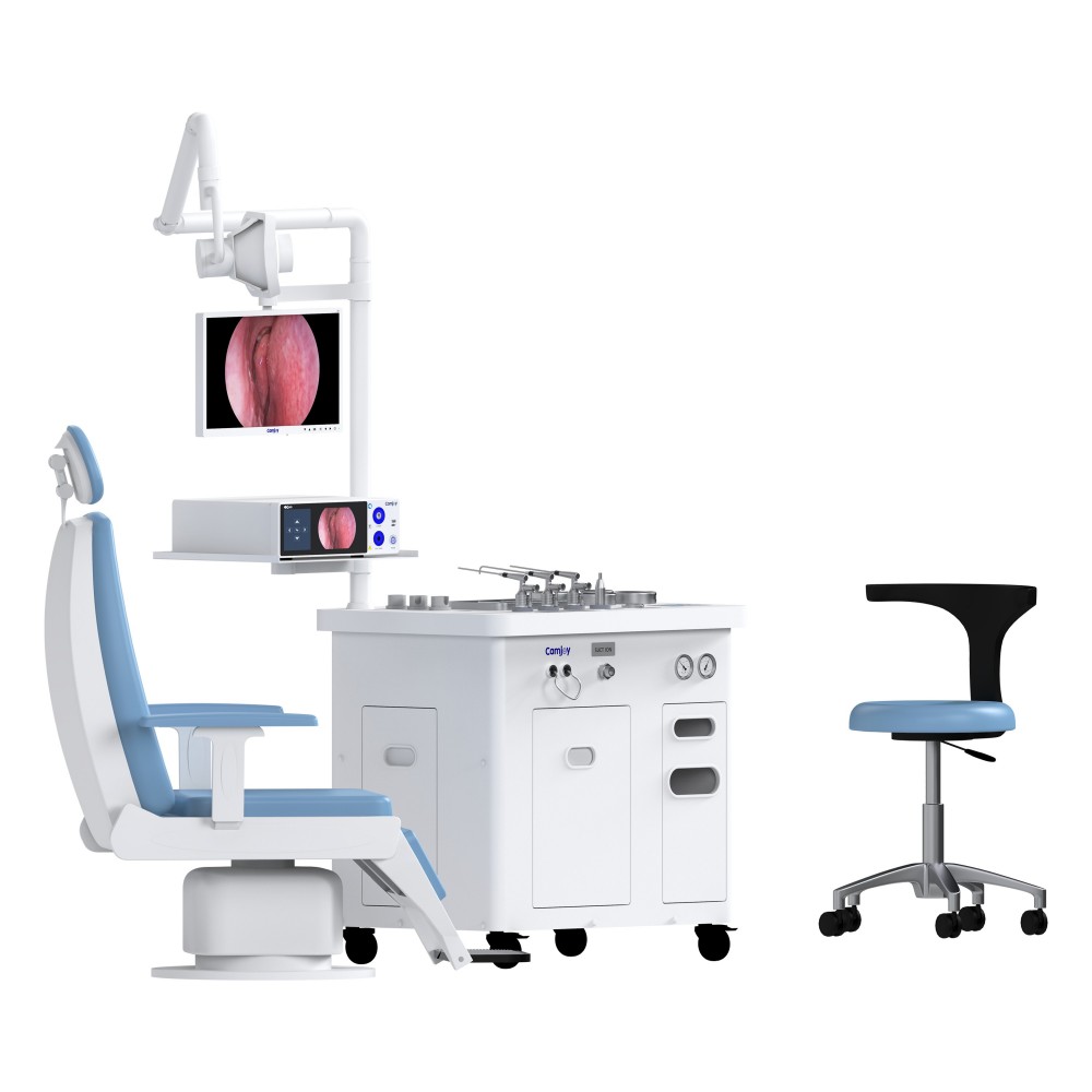 Al eliminar la lubricación con aceite y utilizar un mecanismo **silenciador patentado**, Camjoy proporciona un entorno operativo ultra silencioso, una característica fundamental para pacientes pediátricos sensibles o adultos ansiosos. La serie CB ofrece configuraciones completas, incluyendo la CB003 que incorpora la consola, la silla de examen médico eléctrico de gama alta **CH103 y un sistema de imagen completo, presentando un rival de alto rendimiento y rentable frente a consolas como las unidades **ATMOS S 61** u **Otopront**.