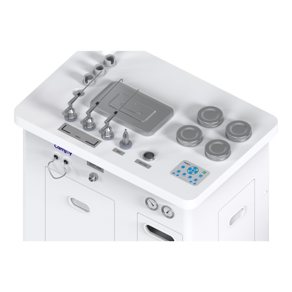 La Consola de Tratamiento Deluxe de la Estación de Trabajo Única Camjoy CB está diseñada para el exigente entorno de hospitales de alto volumen y clínicas especializadas de otorrinolaringología. Esta serie es un potente centro de tratamiento automatizado que minimiza significativamente la contaminación acústica, abordando una preocupación importante tanto para el personal médico como para los pacientes. La serie CB se diferencia por integrar potentes sistemas de succión y presión, **libres de aceite** en una sola unidad cohesionada.